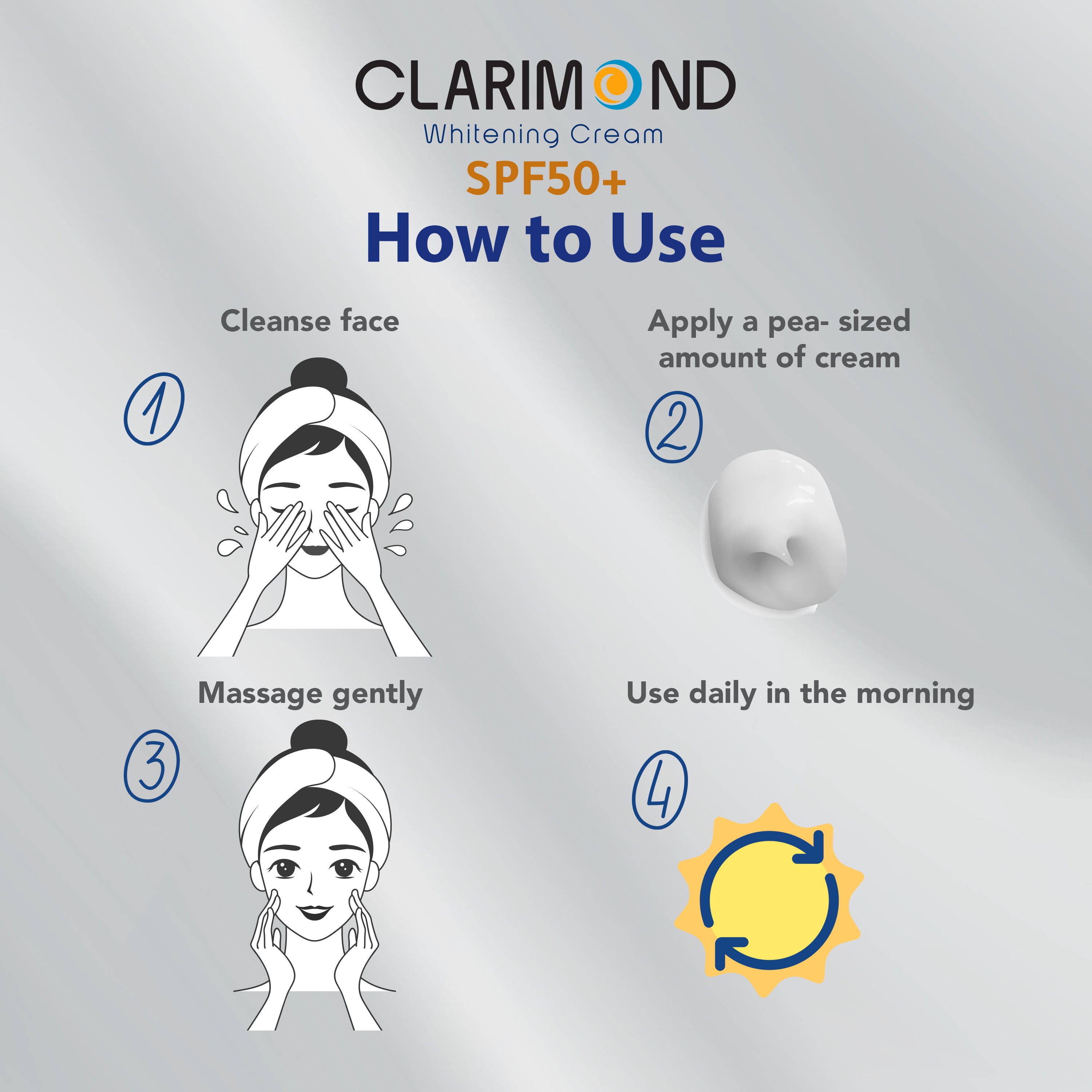 يُطبق صباحًا على بشرة نظيفة وجافة مع تدليك لطيف لمدة 2-3 دقائق حتى الامتصاص الكامل.