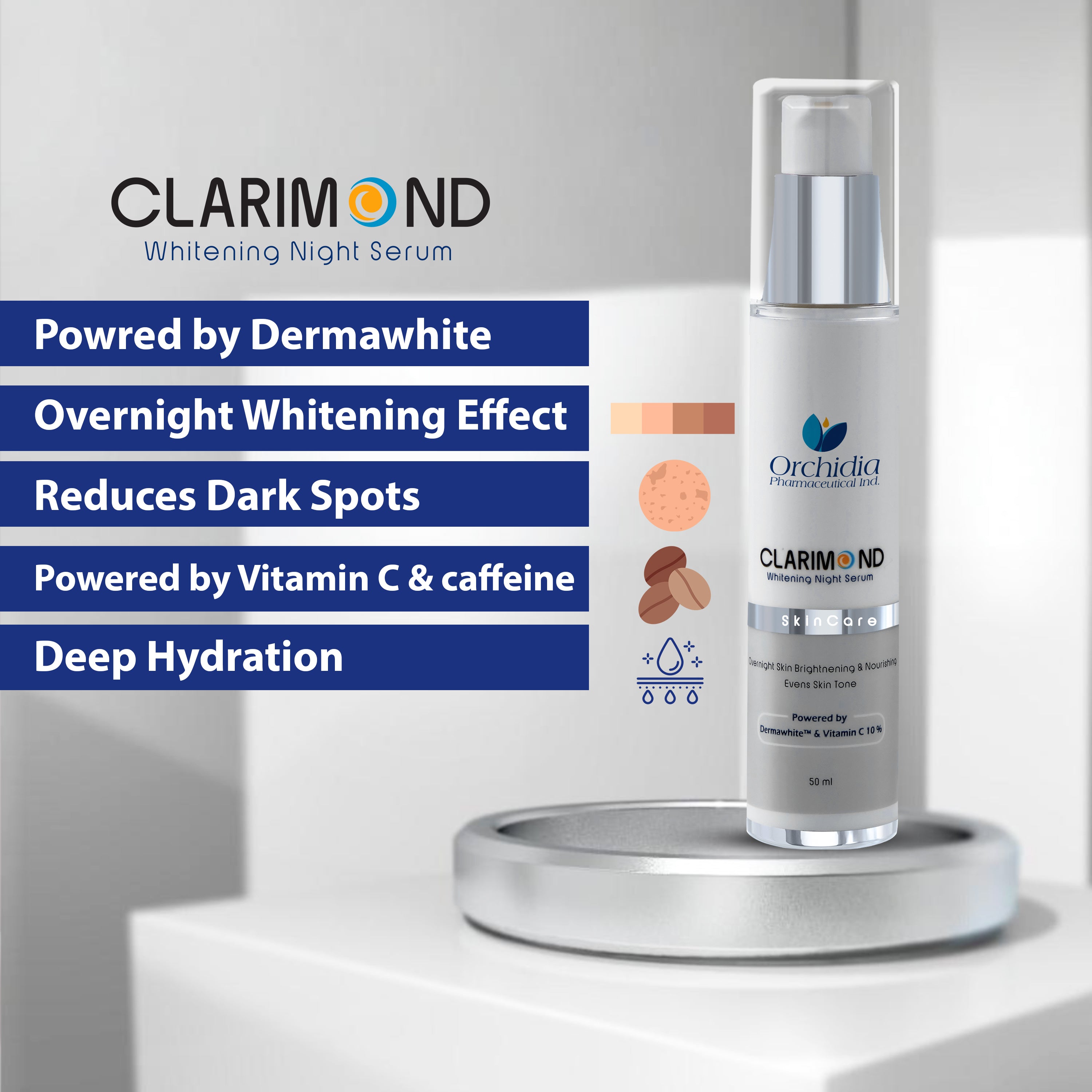 سيروم التفتيح الليلي كلاريموند من أوركيديا هو تركيبة مبتكرة بمزيج مكثف من المكونات الطبيعية المضيئة التي