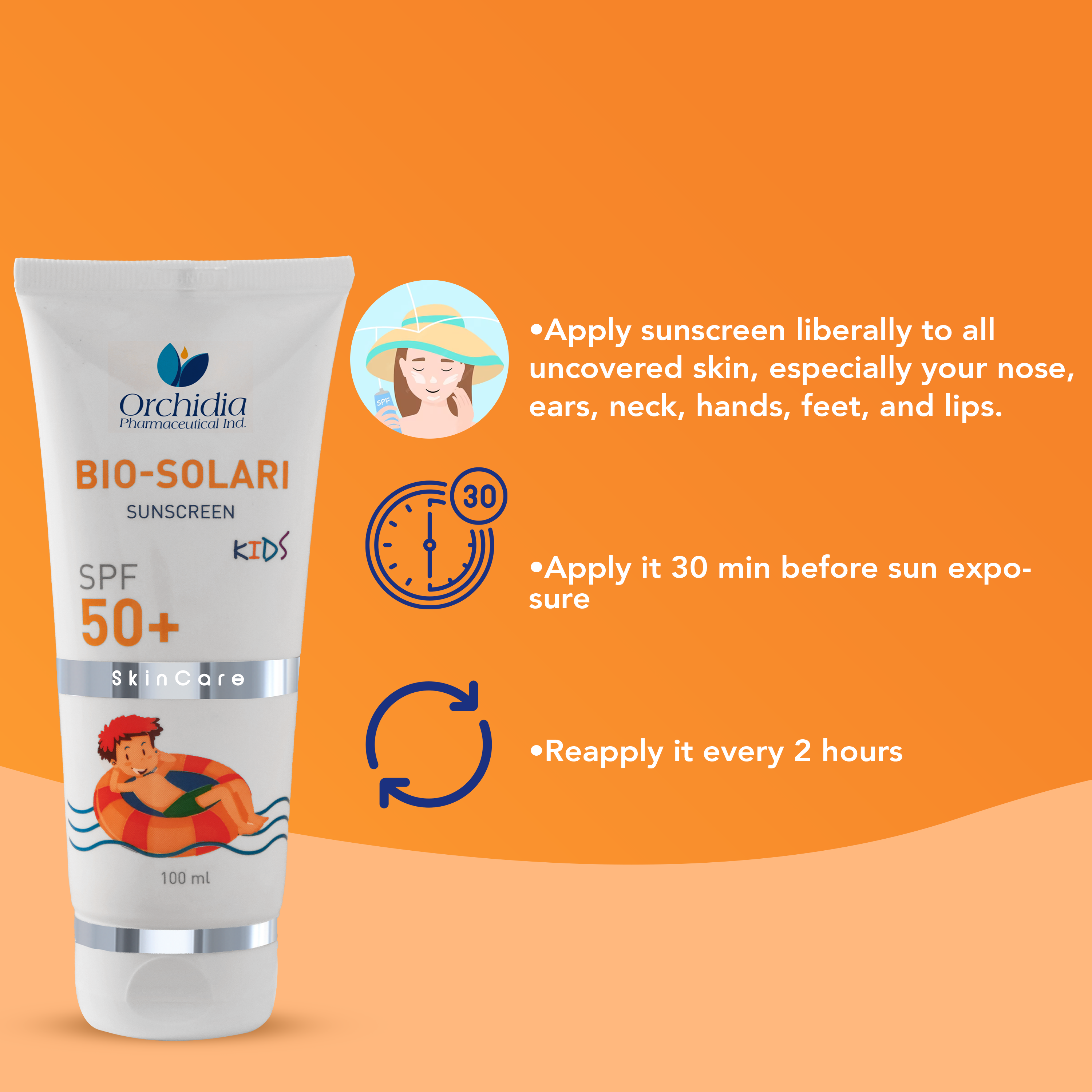 هو لوشن لطيف مناسب لأطفالك لحماية وجوههم وأجسامهم الحساسة من أضرار أشعة الشمس مع توفير حماية مثالية، واقي الشمس Bio-Solari للأطفال SPF 50+ ؛